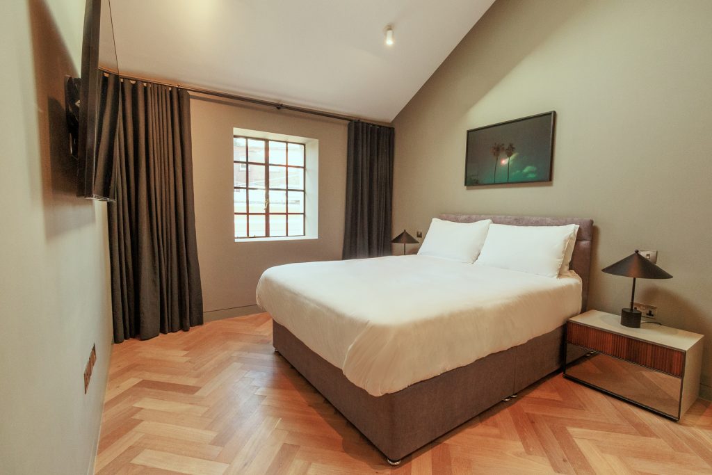 Upstairs there are four bedrooms, all doubles, one is en-suite, while a family bathroom completes the accommodation. The bedrooms and hallway are fitted out using the same high-quality oak as for the kitchen and pantry, while double glazed, steel framed windows with glazing bars have been installed to the first-floor bedrooms, which is in keeping with the historic building façade. The three bathrooms feature marble topped vanity units and mirror fronted storage, with luxurious white sanitaryware throughout. Limestone Honed finish large format stone tiling provides the wall and floor surfaces while soft LED general and task lighting illuminates the spaces.