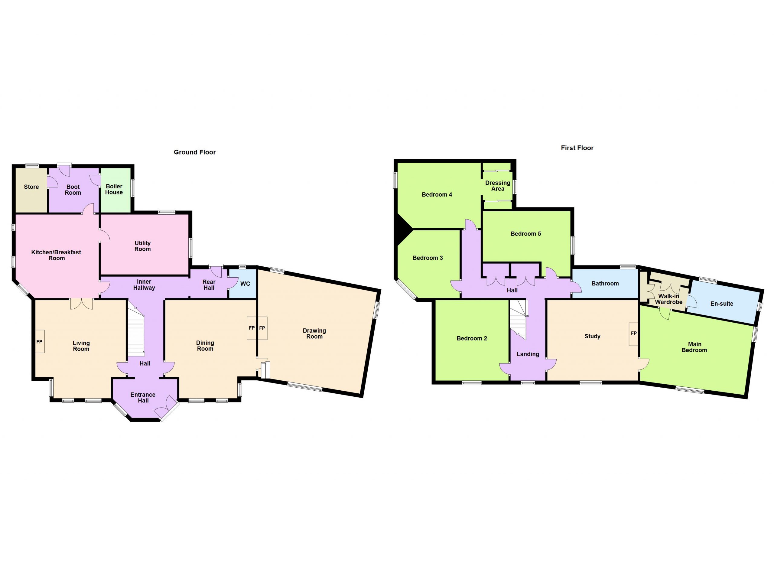 An attractive flight of stairs from the entrance hall accesses the first-floor accommodation which comprises an expansive primary bedroom suite with an office space, bedroom, dressing room and en-suite. There are four further spacious bedrooms and a well-appointed family bathroom. All of the southerly facing rooms on the ground and first floor offer magnificent views over the gardens and across the surrounding countryside to the Sugarloaf.