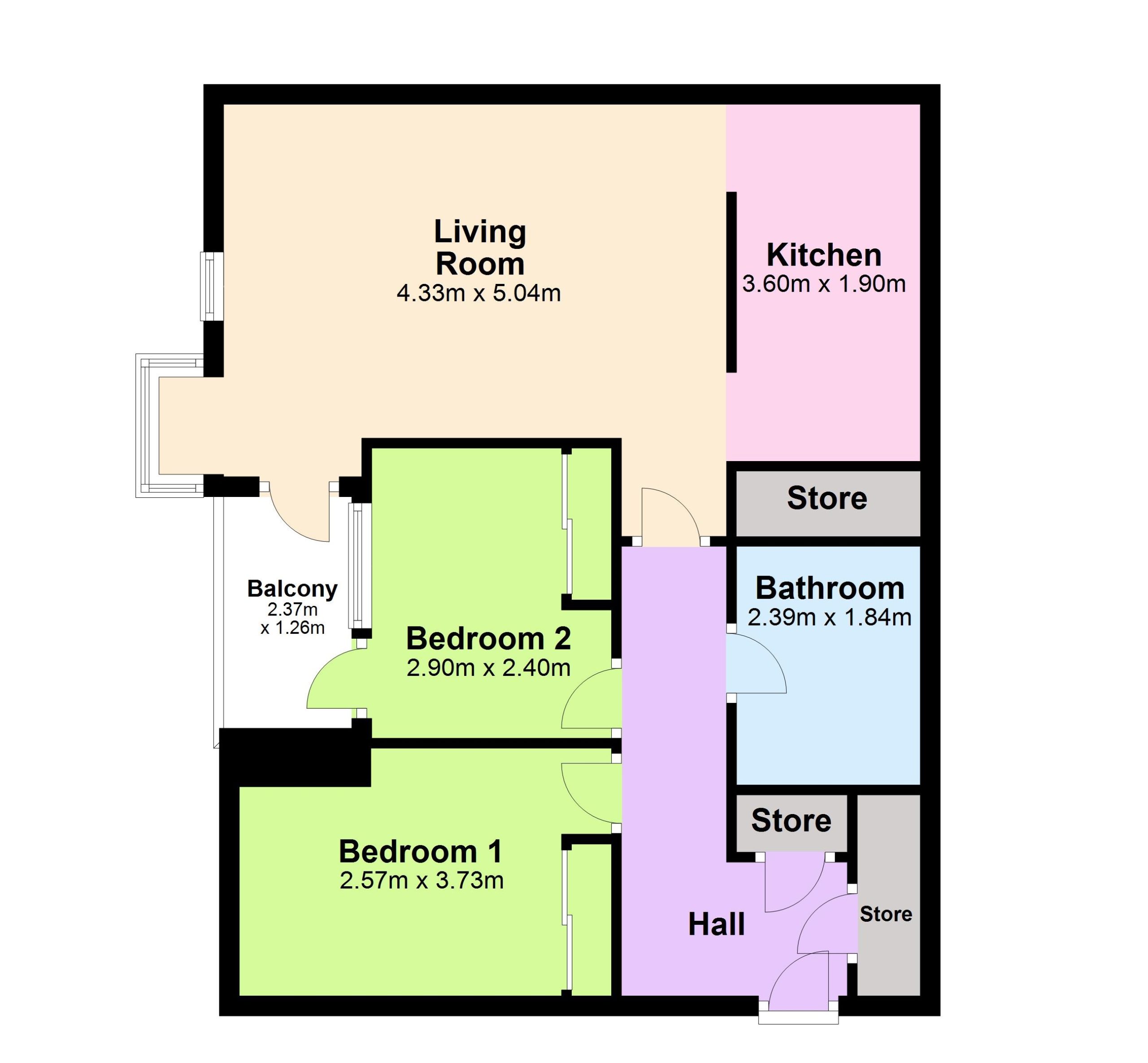 second bedroom similarly features built in wardrobes, also grants access to the balcony. Either bedroom offer the versatility to function excellently as a home office or study. Off the entrance hall is a spacious open plan dining / living space which also extends out onto the decked balcony.