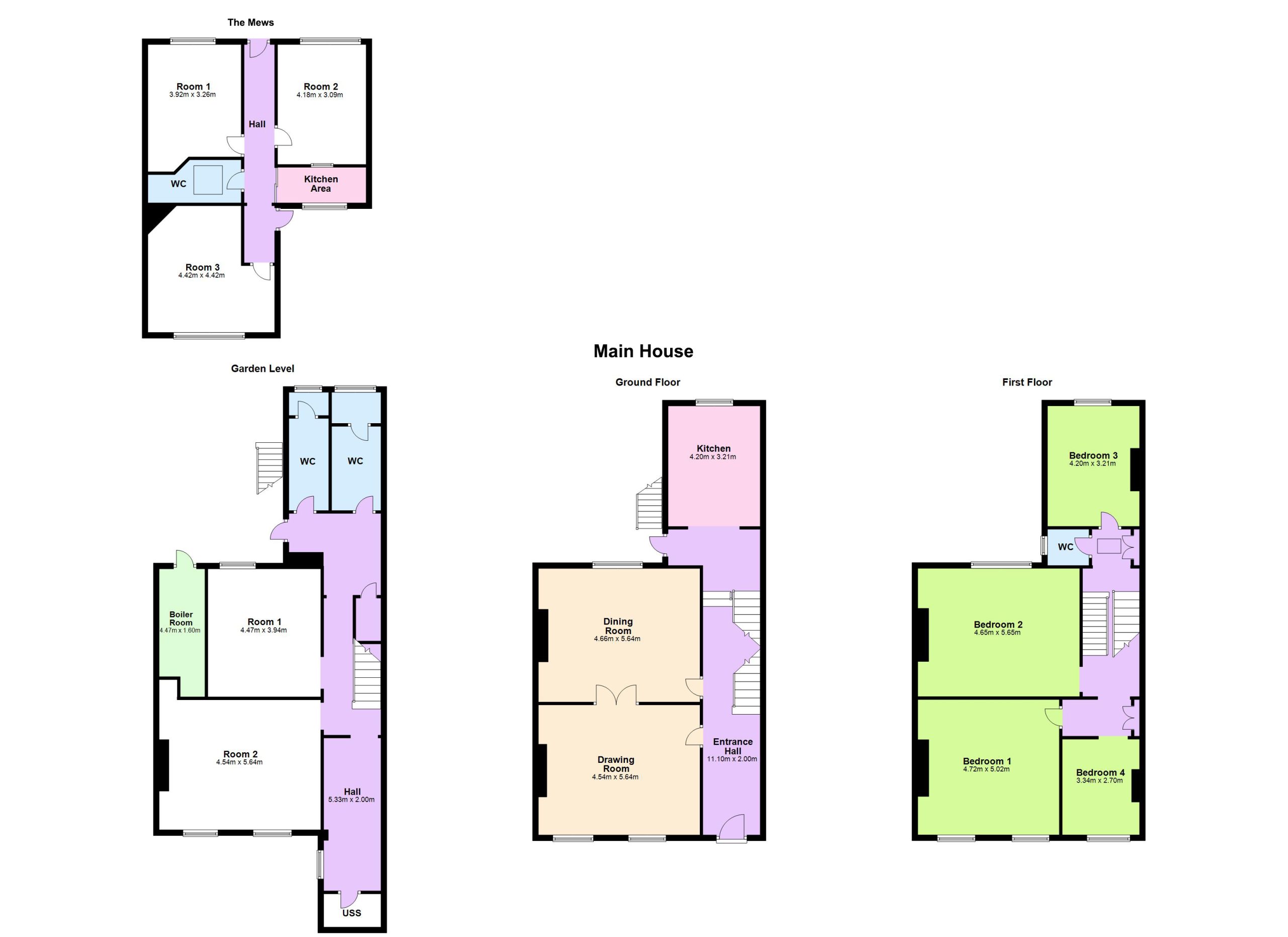 At garden level there is a second entrance hall, two further reception rooms and two WC’s also situated on this level, also with direct access to the rear garden.