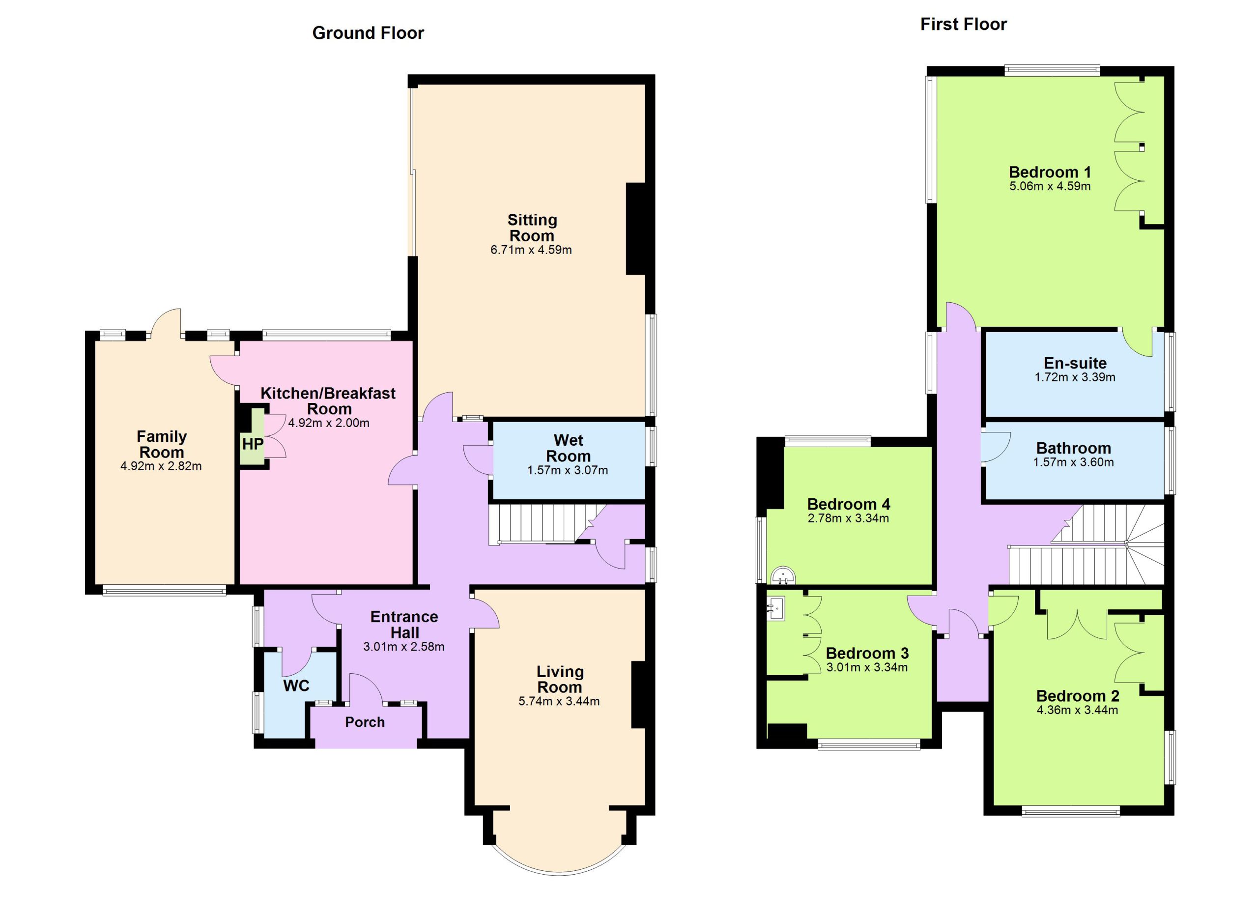 The accommodation briefly comprises an attractive panelled entrance hall with cloakroom and guest WC. To the right is a living room with a bow window overlooking the front garden and an open Sandstone fireplace. To the rear of the house is a staircase hall to the left of which is a fitted kitchen overlooking the back garden with an AGA. The kitchen leads through to the converted garage which provides back door access and could be used as an additional living / dining room. At the back of the house is an impressive drawing room with feature fireplace, sliding glazed doors opening onto the patio and a large picture window looking onto the side garden. Finally a recently fitted wet room completes the ground floor accommodation.