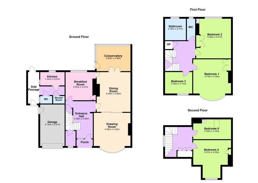 The property is approached through double vehicular gates into a walled front garden laid out in lawn, bordered by mature planting, which provides off street parking and access to a garage, pedestrian side access leads to the rear garden. A porch entrance leads into a welcoming hallway with understairs storage and a telephone booth room on the stairs. To the right are two interconnecting reception rooms, with original fireplaces and bay window to the front, the rear reception room leads directly into a conservatory, with access to the back garden. The kitchen is situated to the rear of the property with adjoining scullery, from here a hallway leads to a separate shower room and a separate toilet, there is side access here to the garden. There are three double bedrooms and family bathroom, with separate toilet on the first floor. Two additional bedrooms are situated on the second floor, with under-eaves storage accessible from the landing. The rear garden has a sunny south-easterly aspect and is laid out in lawn and mature herbaceous borders.