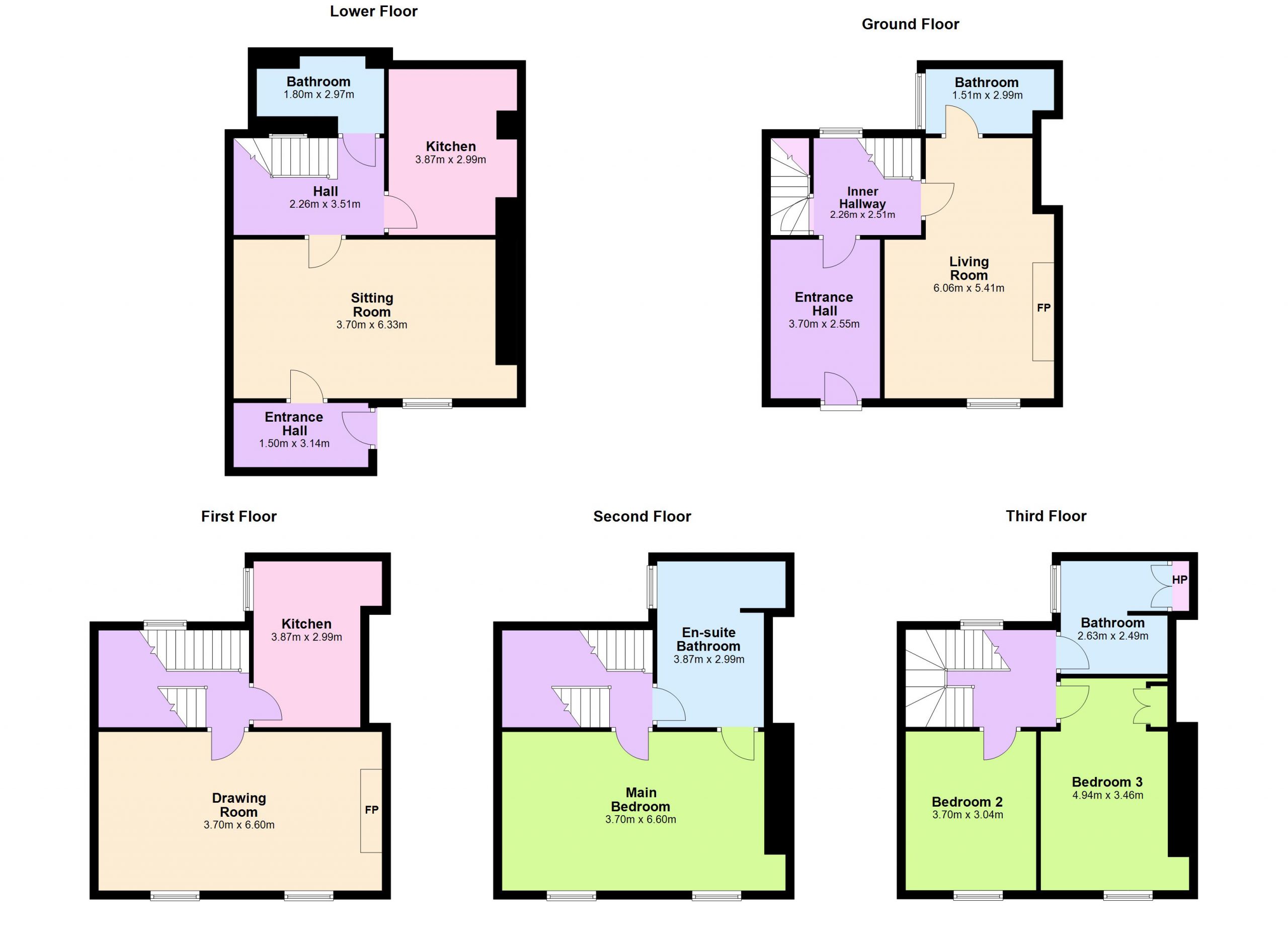 On the first floor is a magnificent drawing room with a feature fireplace, perfect for entertaining or relaxing. A fully fitted kitchen is positioned to the rear. On the second floor is the principal bedroom with access to the main bathroom, also accessible from the landing. The third floor offers two further double bedrooms and a stylish shower room.
